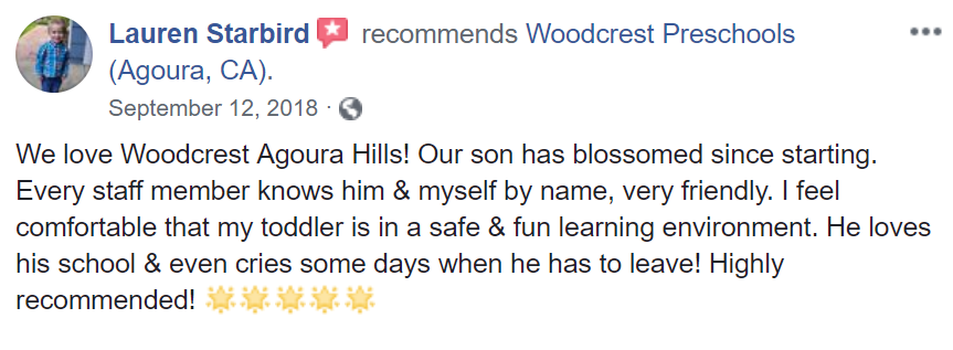 Thank you for your interest in Woodcrest Preschool in Agoura Hills located at 28370 Roadside Drive. Our Agoura Hills center is set on a park like campus filled with smiling students, dedicated teachers and supportive parents. The school is conveniently located in Agoura Hills off the 101 FWY near Kanan Rd in Las Virgenes. If you are looking for a loving and nurturing preschool program with strong academics, fun themes, lots of play, and 21 century skill building, Woodcrest Preschool is the right place for your family.